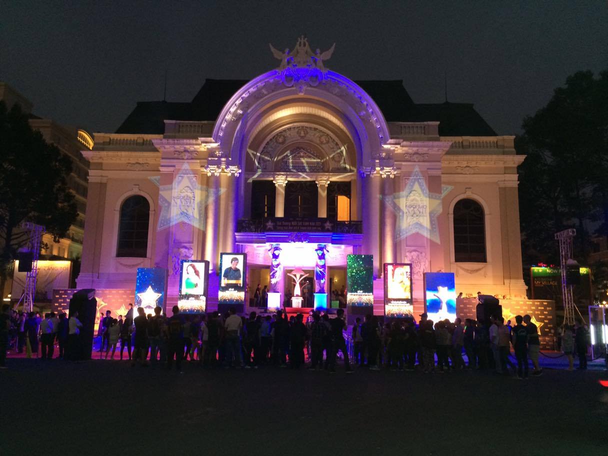 Công ty Hoàng Trần hân hạnh đồng hành cùng sự kiện. Cho thuê 2 máy chiếu 15.000 Ansilumen tại sảnh đón đại biểu của Nhà hát Thành Phố.