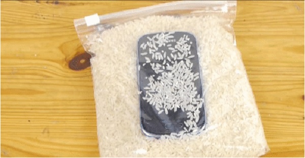 Sau đó bạn có thể cho điện thoại của mình vào một bọc dây kéo, đổ đầy gạo và để trong vòng 2-3 ngày.